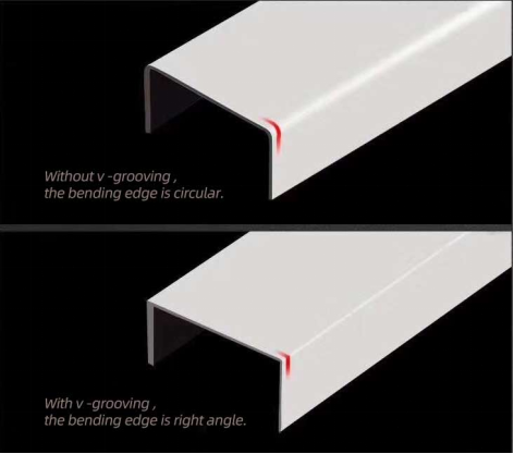 La ranura en V, también conocida como corte en V, es un proceso para cortar ranuras en chapa plana y sirve como una etapa auxiliar para cortar y doblar. Después de la ranura en V, la lámina tiene líneas de referencia claras para cortar y doblar; después de la curvatura, el filete puede ser retirado para lograr una curvatura de ángulo recto verdadero.