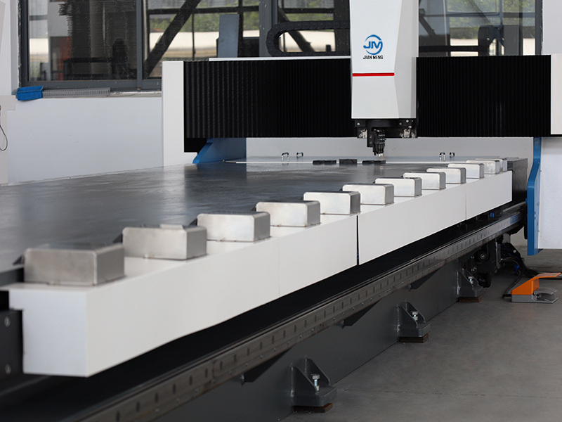 La máquina de ranura automática de cuatro lados en V se basa en un marco de pórtico horizontal, y la base de la máquina y la viga transversal se templan en un horno eléctrico para eliminar la tensión de soldadura, garantizando una alta rigidez y estabilidad de la máquina herramienta; El estante general se somete a mecanizado de precisión CNC para sujetar una sola vez, asegurando que la superficie de instalación sea paralela y perpendicular; Las encimeras de acero de baja aleación y alta resistencia se procesan mediante autoplanificación para ser planas y lisas. Durante el procesamiento, las placas permanecen estacionarias para evitar el desgaste, lo que las hace particularmente adecuadas para el mecanizado de precisión de placas decorativas y de acabado de espejo.